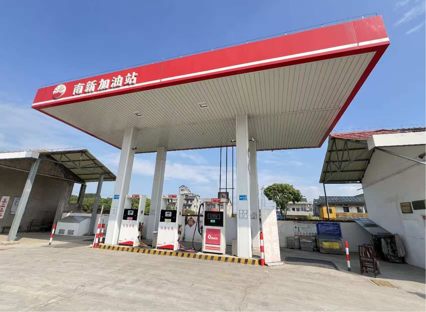 南新農(nóng)機加油站位于宜興市和橋鎮(zhèn)南新街,占地面積約為324m2,其中站房面積37.52m2,加油島罩棚建筑面積49.08m2(建筑面積為投影98.16㎡折半),建筑物產(chǎn)權系自有。南新農(nóng)機加油站設有埋地臥式儲油罐3只,設置在加油站站區(qū)的地下,由西向東為10m392#汽油罐、10m395#汽油罐和10m30#柴油罐。根據(jù)《汽車加油加氣加氫站技術標準》(GB50156-2021)第3.0.9條規(guī)定(柴油折半)計算,本加油站計算總容量為25m3,加油站屬三級加油站。加油站設稅控加油機3臺,一機一槍,總計3槍(2臺汽油加油機,1臺柴油加油機)。 |