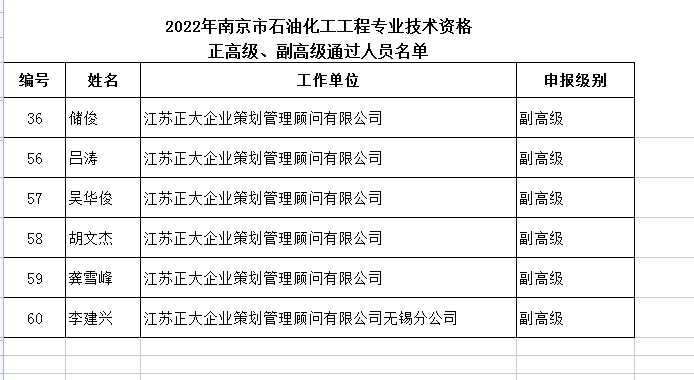 南京市2022年石油化工工程中、高級專業(yè)技術(shù)職稱評審結(jié)果公示